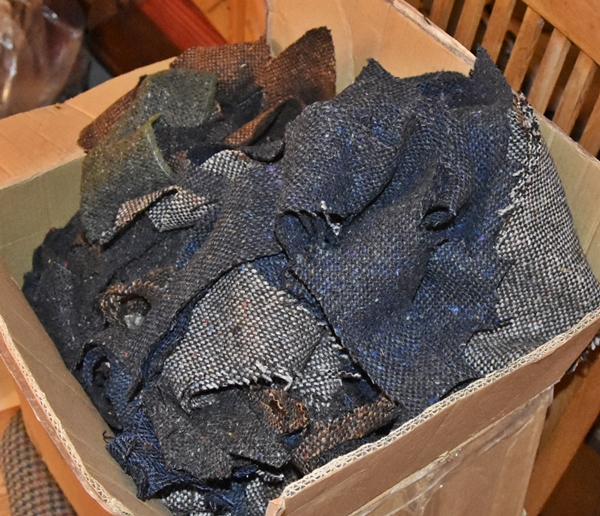 Vad det gäller paketet från Hanna Hats som jag nämnde i mitt förra inlägg så innehöll det ”clippings”, d,v,s, spillbitar från keps- och hattillverkning. Bitarna är ganska små men jag ska sy ihop dem och försöka göra en väst.