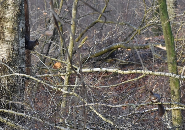 I förmiddags promenerade Sigge och jag en sväng i skogen kring Fröllinge. Vi såg inte mycket vilt på nära håll men vi såg två ekorrar på ett nygallrat område och en nötskrika som flög förbi strax efteråt.