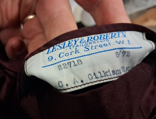 Skräddarna låg då på en parallellgata till skräddargatan Savile Row men de är idag uppköpta av ett Savile Row-skrädderi. Jag uppmärksammade personalen på etiketten, de hade inte noterat den. Och varför skulle de det, den var ju gömd inuti ena innerfickan. Det är bara klädnördar som jag som letar efter etiketter där.