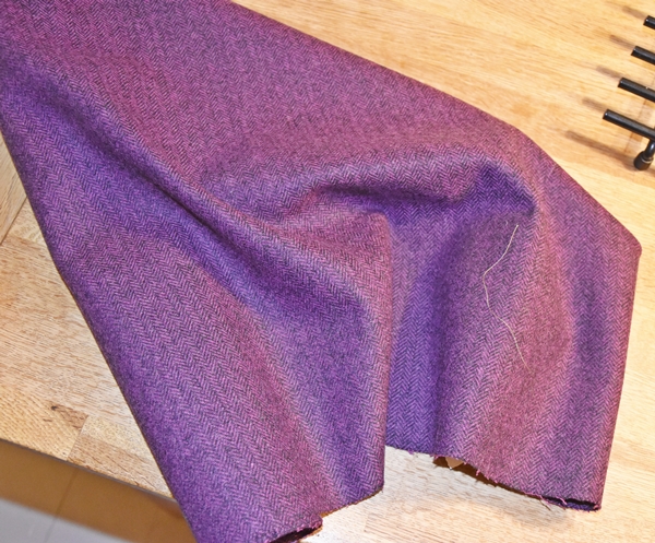 När han var avsläppt här hemma och Sigge fått lufta sig lite så for jag till Falkenberg och lämnade en julklapp och när jag ändå var där så var jag inom Röda Korset där med. Det var tur för jag hittade spännande saker idag. Till mig hittade jag lite lila tweedtyg för 20 kr (räcker till en väst). Jag hittade även en väldigt flådig smoking som, när jag undersökte den närmare, visade sig vara skräddarsydd i London 1972.