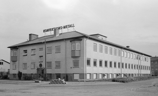 En lagning var att sy fast en knapp som lossnat. Knappen var stämplad Linköping konfektions-metall (kappan var sydd i Malung) så jag var ”tvungen” att googla företaget. Det startades på 40-talet och var åtminstone aktivt fram till 1964. Googligen resulterade även i ett foto på fabrikslokalerna från 1950-talet.