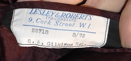 Jag har skickat en förfrågan om möjligheten att sälja den på en vintagebutik i Göteborg men inte fått svar ännu. Kan jag inte sälja den så ska jag sy om den lite (utan att permanent förstöra den) och använda den som ett vardagsplagg. Jag har försökt googla C.A. Gilkison som beställde kavajen 1972 men inte fått fram nåt.
